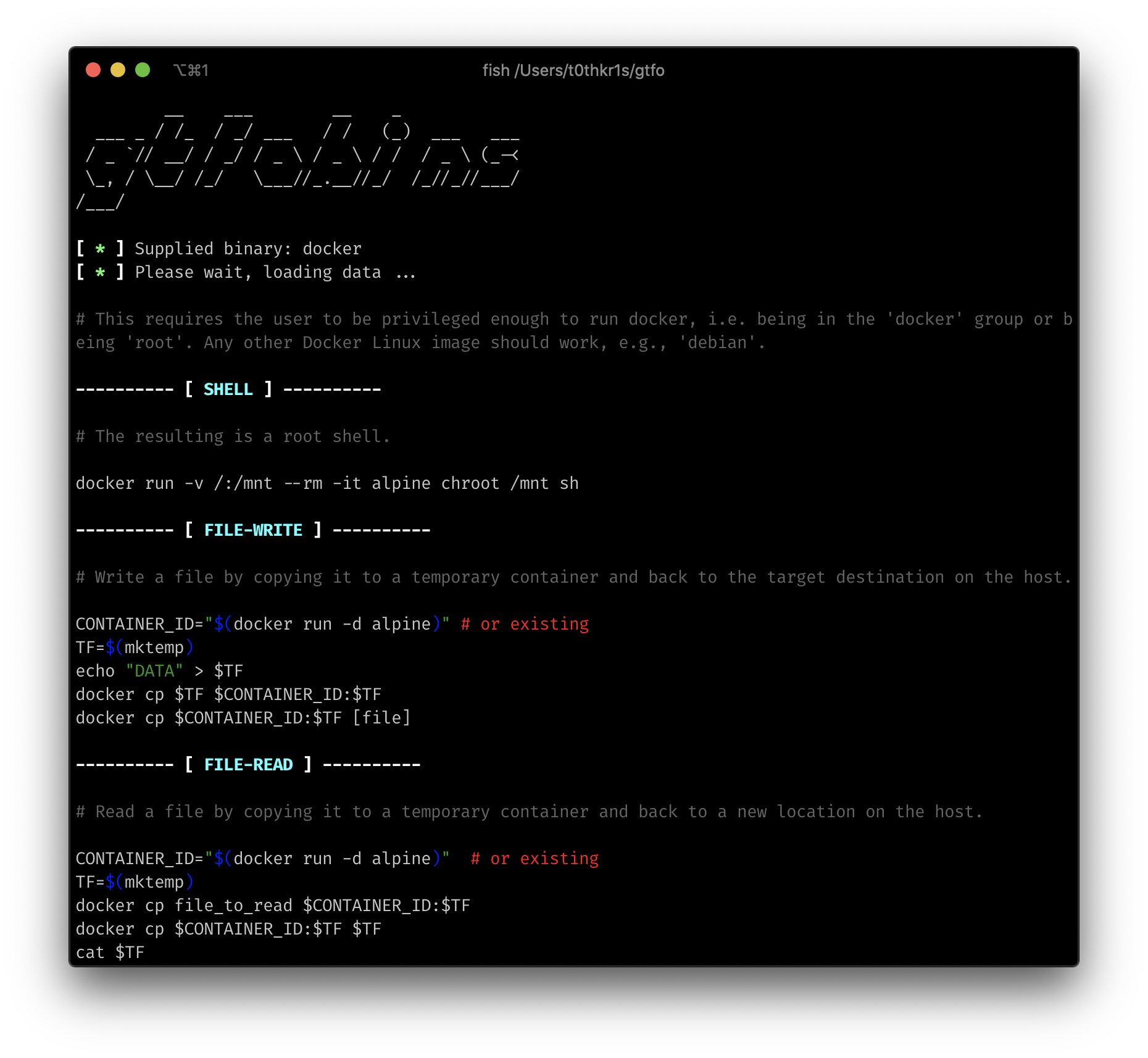 gtfo --versionThe tool provides information about various exploitation techniques: